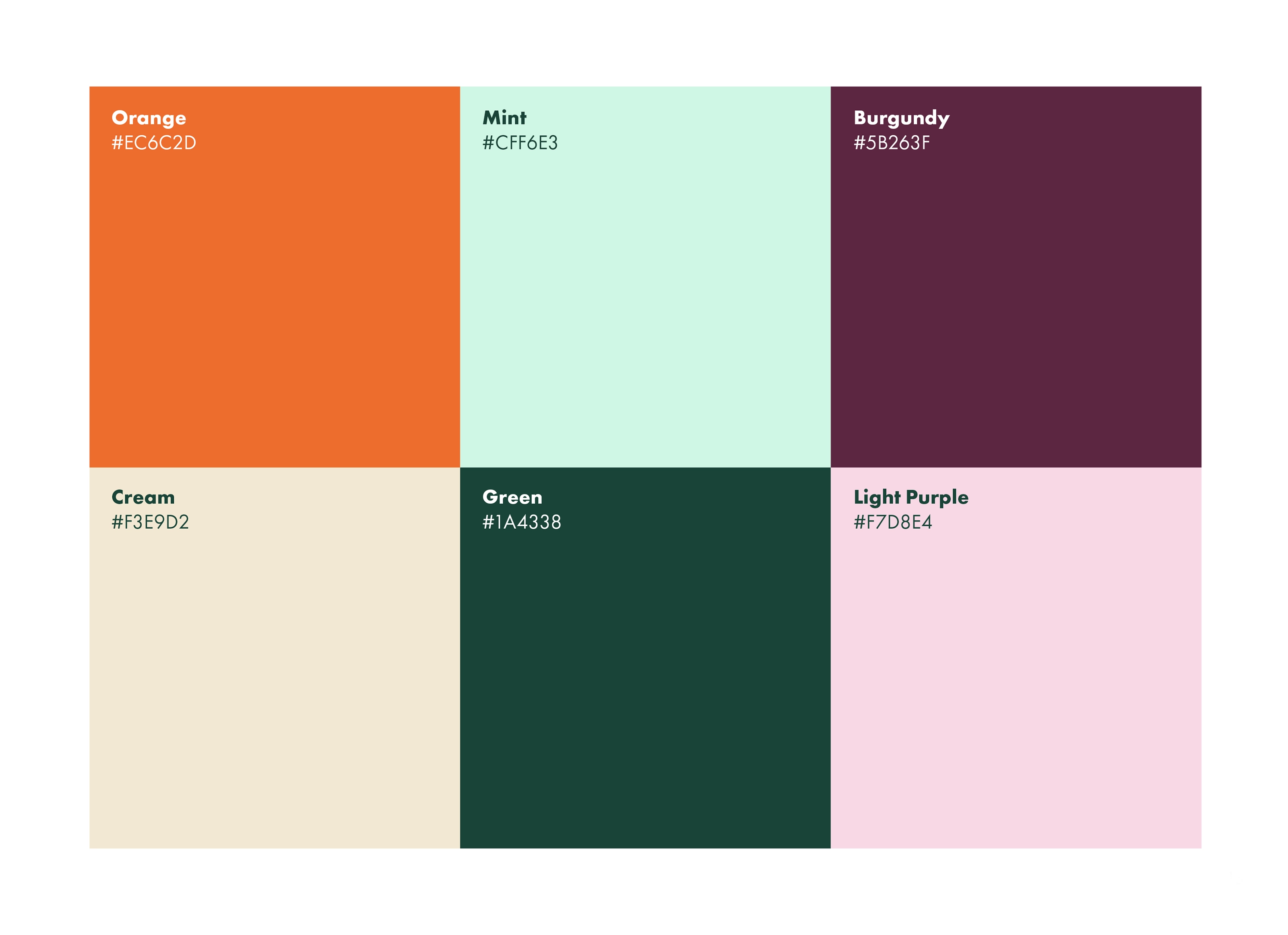 The colour palette avoids predictable greens and blues. Instead it draws from soft, human tones: some gentle greens some more powerful, purples and oranges that feel grounded, warm and alive. The result is approachable and optimistic, echoing the organisation’s vision of renewal and cooperation.
